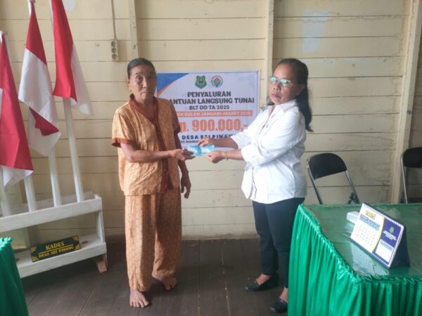 Kuala Kapuas, Betang.tv – Camat Mandau Telawang Kabupaten Kapuas menyaksikan dan secara langsung ikut menyerahkan dana Bantuan Langsung Tunai (BLT) Desa Sei Pinang yang dialokasikan dari anggaran Dana Desa (DD) Triwulan ke-1 tahun 2025, berlangsung di balai Desa setempat, baru-baru ini.