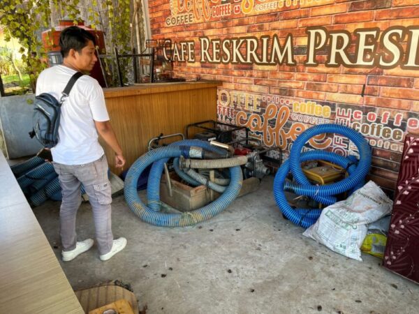 Petugas kemudian mengamankan para pelaku beserta sejumlah barang bukti, diantaranya empat unit mesin penyedot air, lima helai karpet penambang, dan tujuh buah selang plastik.