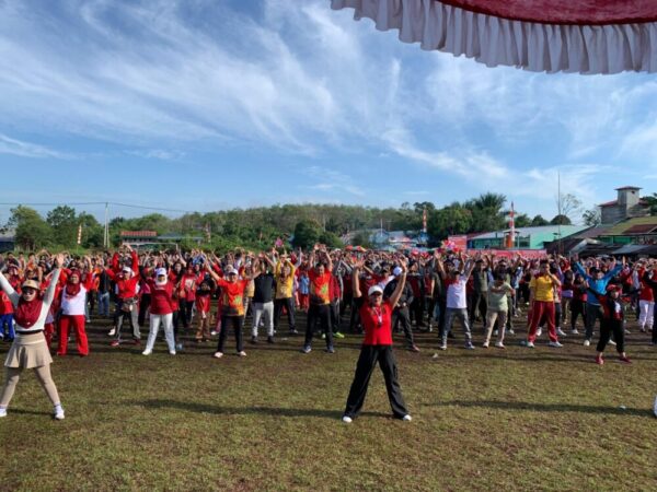 Wakil Bupati (Wabup) Kapuas, Dodo, turut ambil bagian dalam kegiatan Senam Massal yang digelar di Lapangan 11 Januari Kelurahan Palingkau Baru, Kecamatan Kapuas Murung, Jumat (15/8/2025).