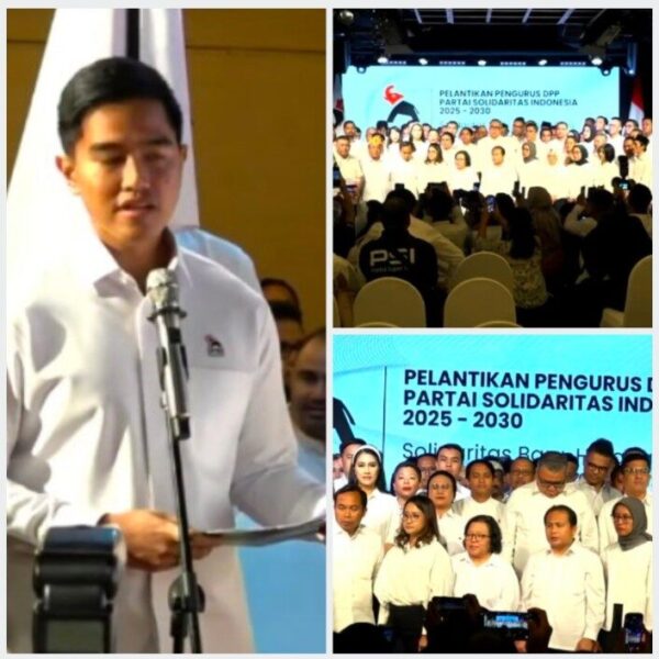 Jakarta, Betang.tv – Partai Solidaritas Indonesia (PSI) resmi melantik kepengurusan Dewan Pimpinan Pusat (DPP) periode 2025–2030 di sebuah teater kawasan Thamrin, Jakarta Pusat, Jumat (26/9/2025). Ketua Umum PSI Kaesang Pangarep memimpin langsung prosesi pengumuman dan pelantikan tersebut.
