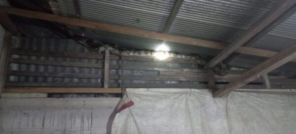 Ketua RT setempat, Jimmy Kuharap, SE, menerima laporan adanya ular dengan diameter sekitar 3 inci yang bertengger di sekat dinding dapur salah satu rumah warga. Setelah dilakukan penyisiran, ular ditemukan bersembunyi di atas kerangka atap rumah.