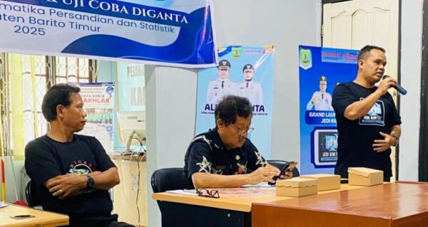 Tamiang Layang, Betang.tv – Era baru digitalisasi layanan publik resmi dimulai di Kabupaten Barito Timur (Bartim). Dinas Komunikasi, Informatika, Persandian dan Statistik (Diskominfosantik) Bartim meluncurkan Jejaring Digital Komunitas Informasi Masyarakat (JEDI-KIM) sekaligus melakukan uji coba terbatas aplikasi DIGANTA (Digitalisasi Pencatatan Tamu), Jumat (3/10/2025) di Aula Diskominfo setempat.