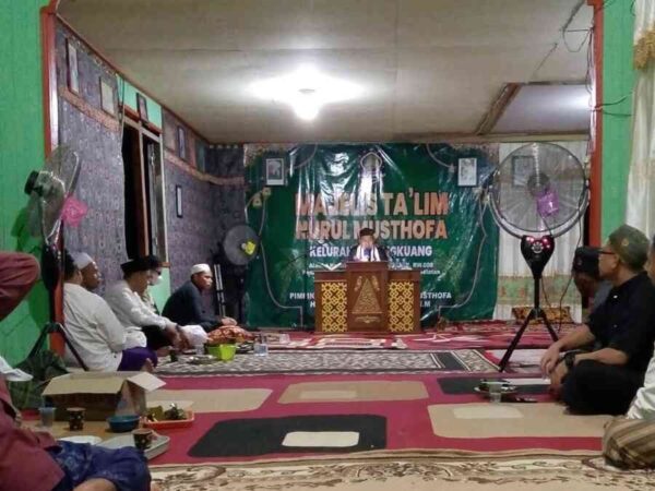 Buntok, Betang.tv – Majelis Taklim Nurul Musthofa Kelurahan Bangkuang kembali menggelar kegiatan pengajian rutin mingguan pada Selasa (21/10/2025) malam, bertempat di kediaman Lurah Bangkuang, H Muhammad Iqbal, di Komplek Pelabuhan Bangkuang RT 022 RW 008.