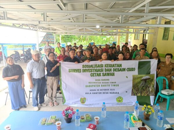 Tamiang Layang, Betang.tv – Langkah konkret penguatan ketahanan pangan terus dilakukan Pemerintah Kabupaten Barito Timur (Bartim). Melalui Dinas Pertanian dan Ketahanan Pangan (DPKP) bersama Lembaga Penelitian dan Pengabdian kepada Masyarakat (LPPM) Universitas Palangka Raya (UPR), dilakukan ekspos hasil Survei Investigasi dan Desain (SID) cetak sawah di Desa Harara, Kecamatan Dusun Timur, Senin (20/10/2025).
