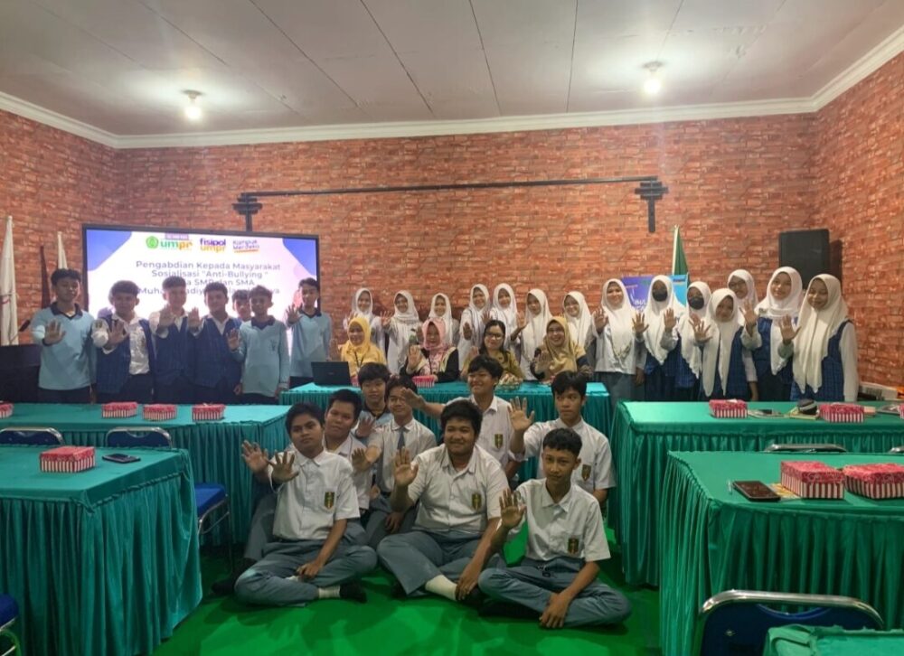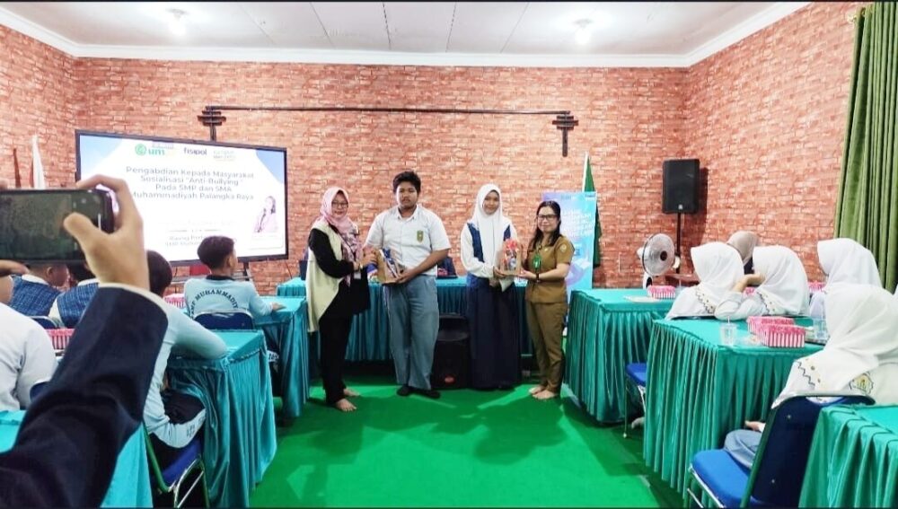 Palangka Raya, Betang.tv — Di tengah maraknya kasus perundungan di kalangan pelajar, dosen dan mahasiswa Ilmu Komunikasi FISIPOL Universitas Muhammadiyah Palangka Raya (UMPR) bergerak melakukan aksi nyata. Mereka melaksanakan kegiatan Pengabdian kepada Masyarakat (PKM) melalui Sosialisasi Anti-Bullying di SMP Muhammadiyah Palangka Raya, Selasa (4/11/2025).