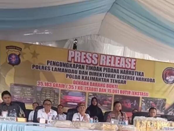 Dari hasil penggeledahan, polisi menemukan 33 bungkus plastik besar berisi sabu dengan berat total sekitar 35,1 kilogram. Tak hanya itu, aparat juga menyita dua bungkus besar pil kuning diduga ekstasi sebanyak 10.008 butir serta satu bungkus pil merah muda sekitar 5.800 butir. Total ekstasi yang diamankan mencapai 15.061 butir, menjadikan pengungkapan ini salah satu yang terbesar di wilayah Kalteng.