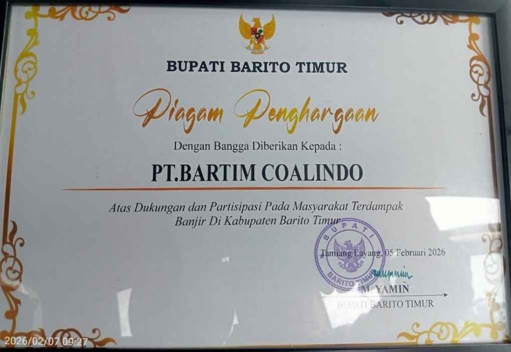 Melalui Kabid Pencegahan dan Kesiapsiagaan, Luhut Tampobolong, Ahmad Gazali menegaskan bahwa penghargaan kepada PT Bartim Coalindo semata-mata bentuk apresiasi atas partisipasi perusahaan dalam membantu penanganan bencana di wilayah Barito Timur.