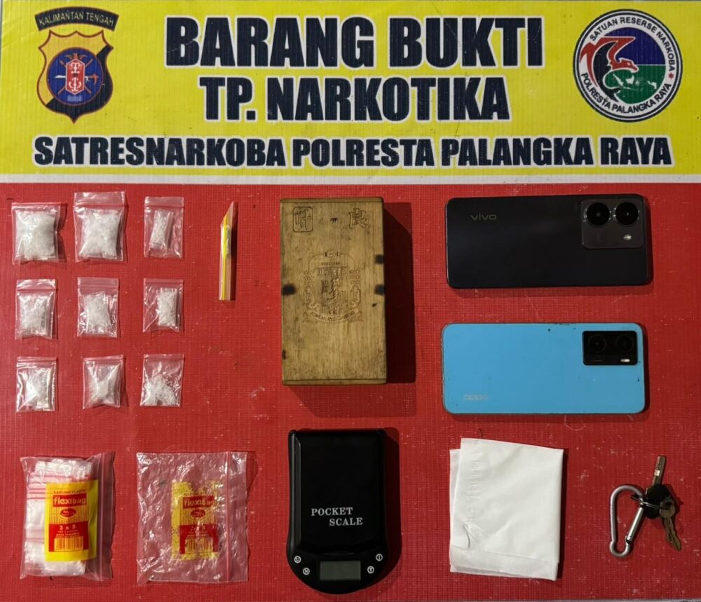 Palangka Raya, Betang.tv – Peredaran narkotika di Kota Palangka Raya kembali terbongkar. Satuan Reserse Narkoba (Satresnarkoba) Polresta Palangka Raya mengungkap kasus peredaran sabu dengan total barang bukti seberat ±11,91 gram dan mengamankan dua pria yang diduga kuat sebagai pelaku, Senin (9/2/2026) sore.