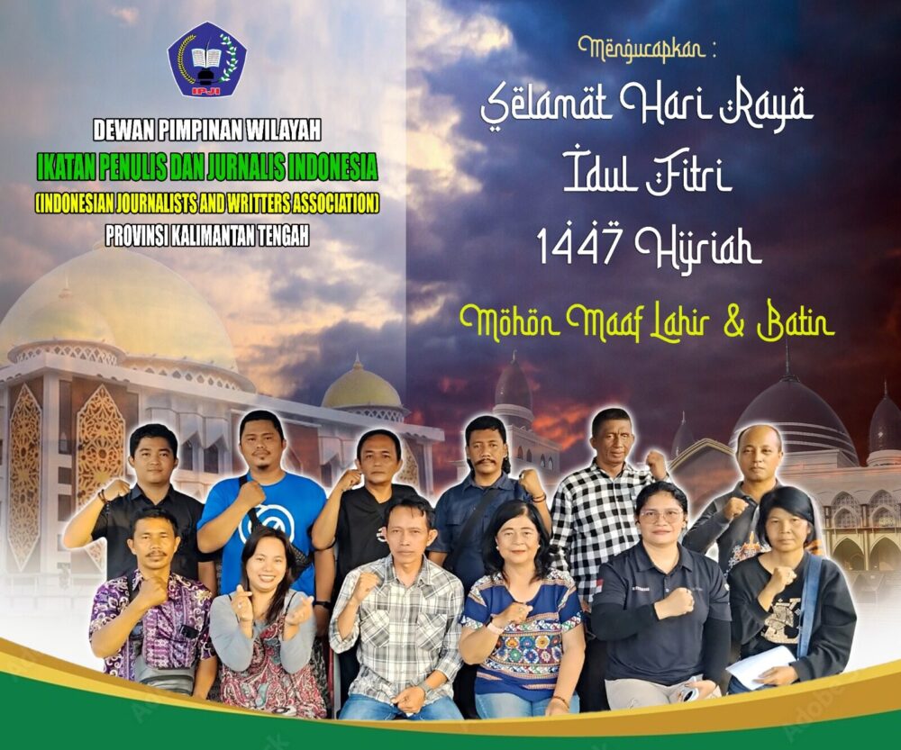 Palangka Raya, Betang.tv – Dewan Pimpinan Wilayah Ikatan Penulis dan Jurnalis Indonesia (IPJI) Provinsi Kalimantan Tengah menyampaikan ucapan Selamat Hari Raya Idul Fitri 1447 Hijriah kepada seluruh masyarakat, khususnya insan pers dan penulis di wilayah Kalteng.