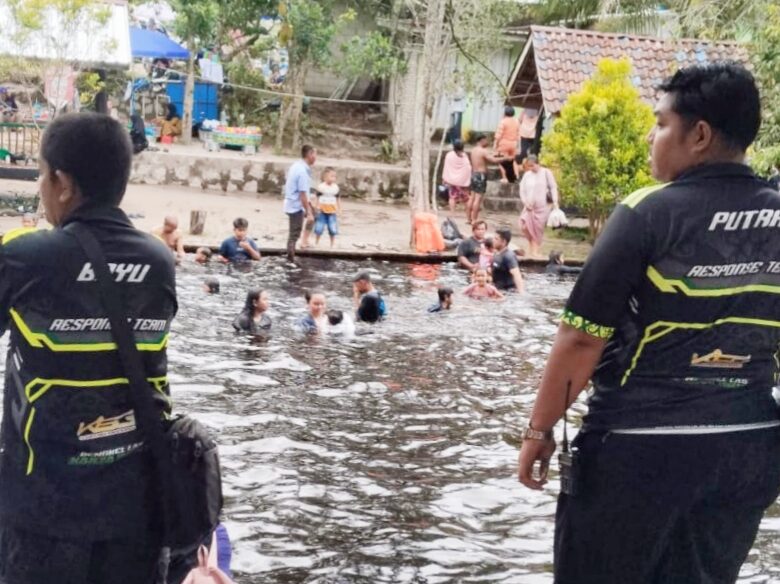 Mereka tampak aktif mengatur arus lalu lintas, membantu penyeberangan pengunjung, hingga melakukan patroli di titik-titik rawan, terutama di area kolam pemandian yang menjadi pusat keramaian.